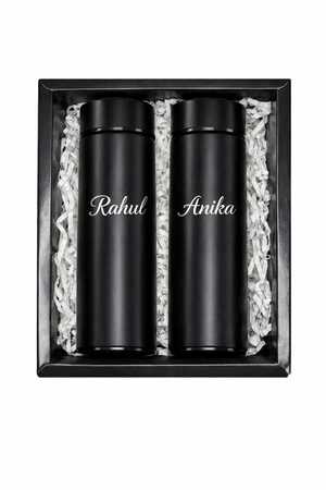 A stylish personalised temperature bottle for couples—perfect to keep love warm and memories close every day.